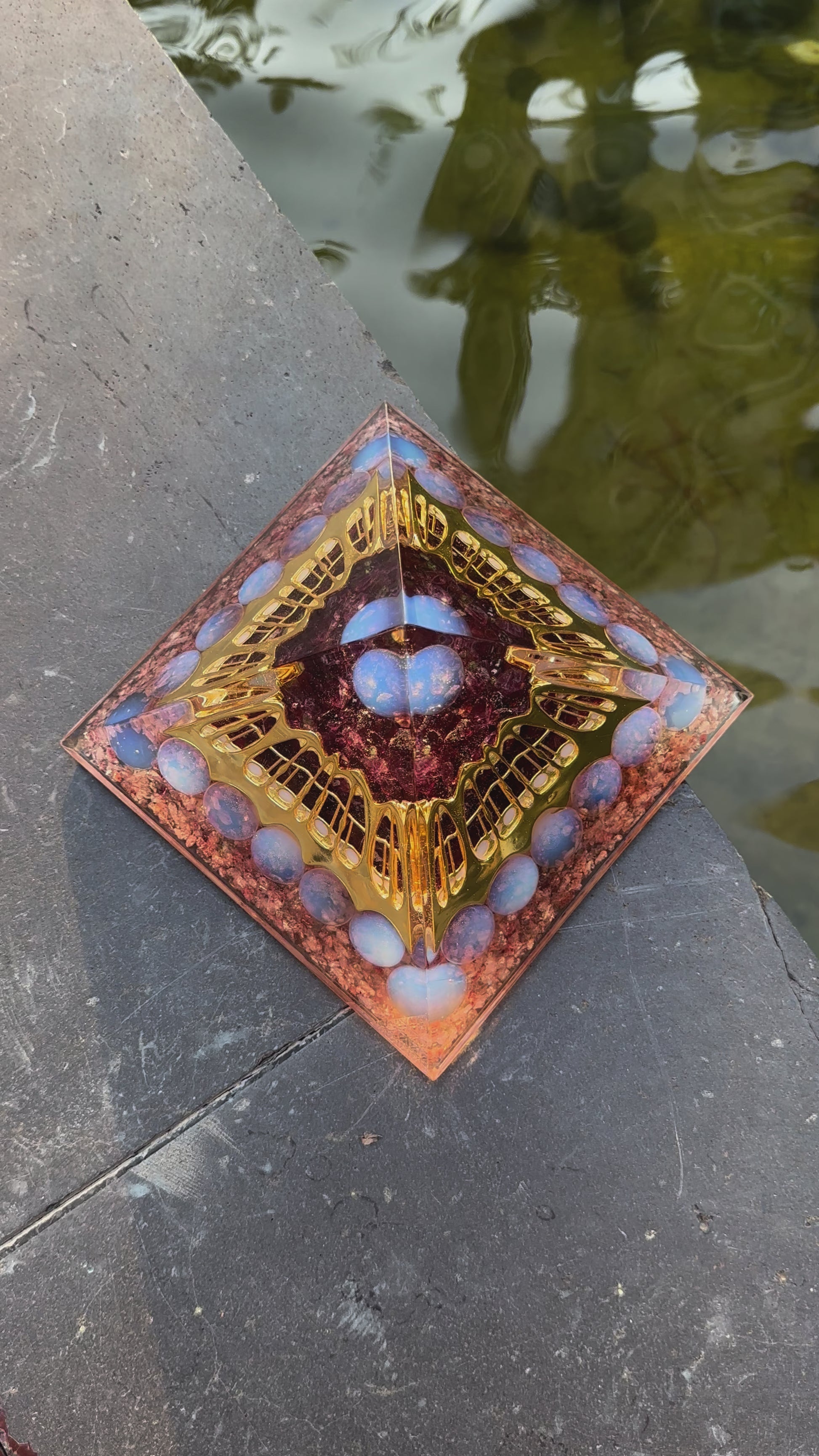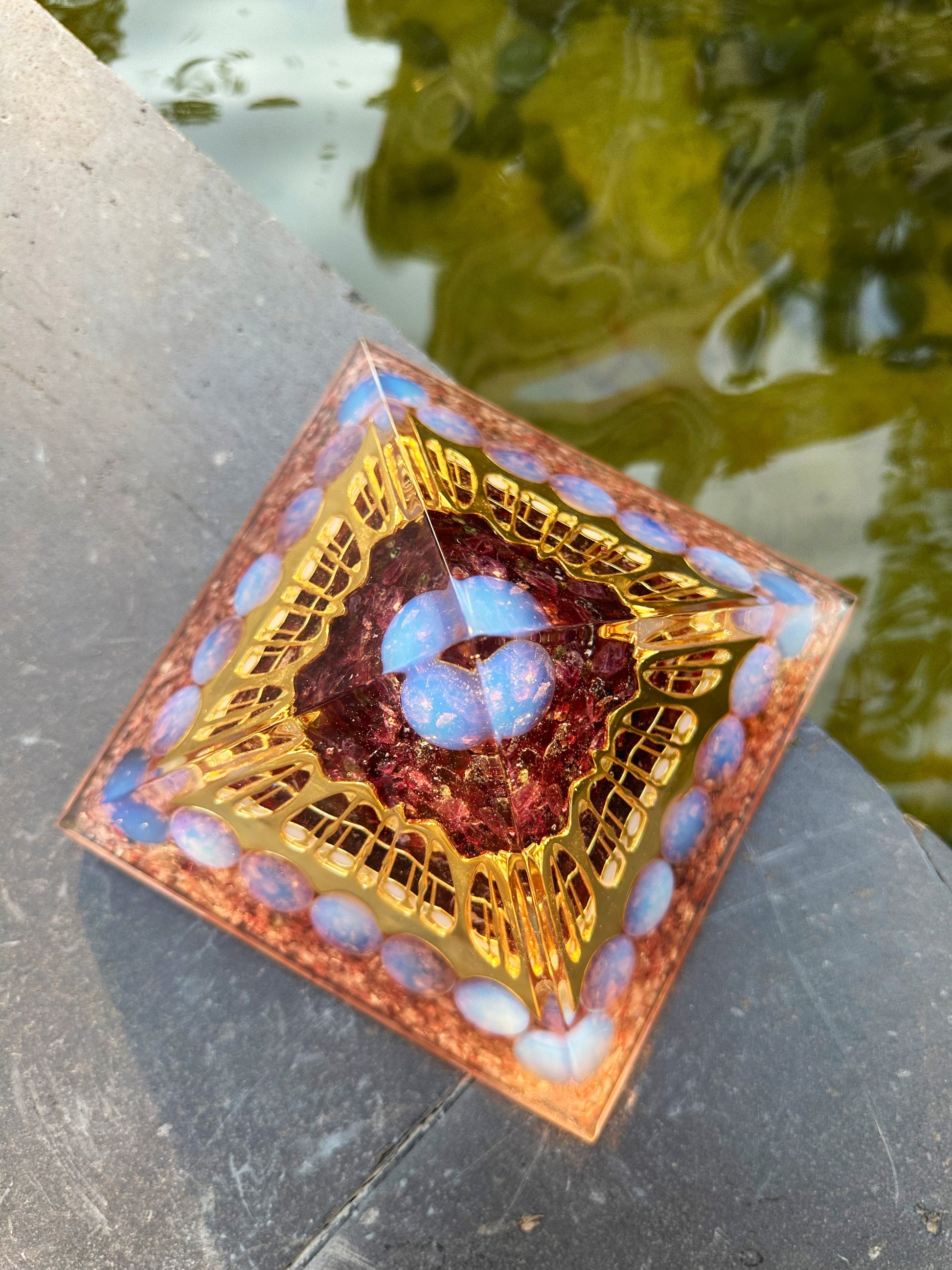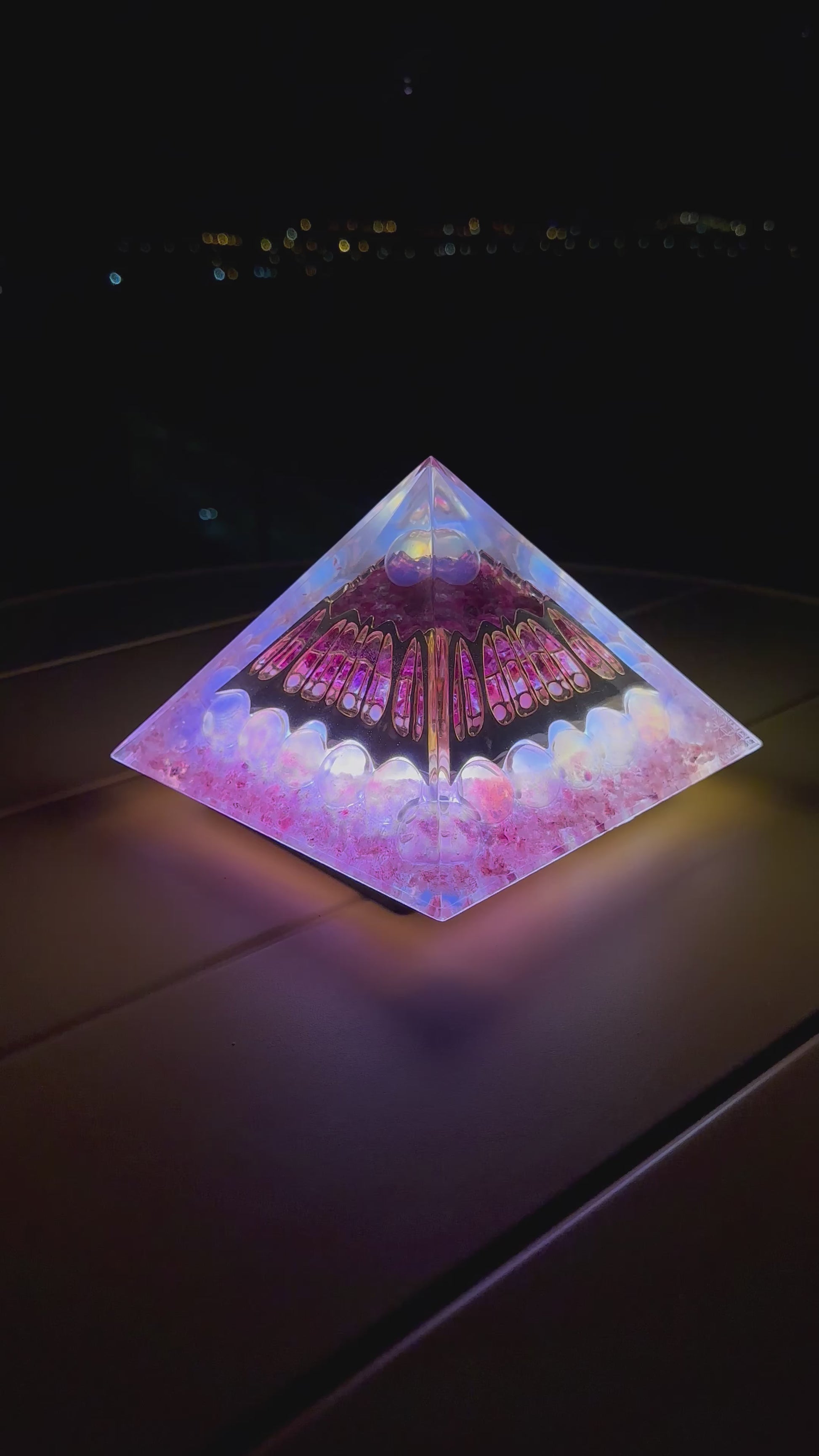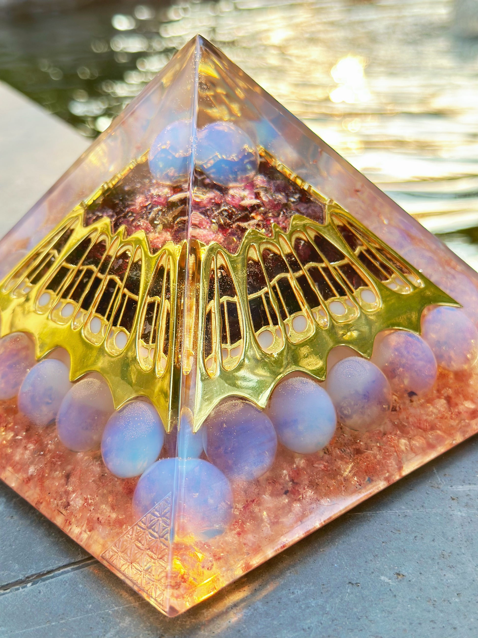 Inspirado por la Casa Batlló de Gaudí, está hecho de cuarzo fresa, granate, esferas de ópalo y accesorios metálicos especialmente diseñados con la forma de las ventanas del salón de la Casa Batlló. Te trae frecuencias vibratorias de felicidad y prosperidad.